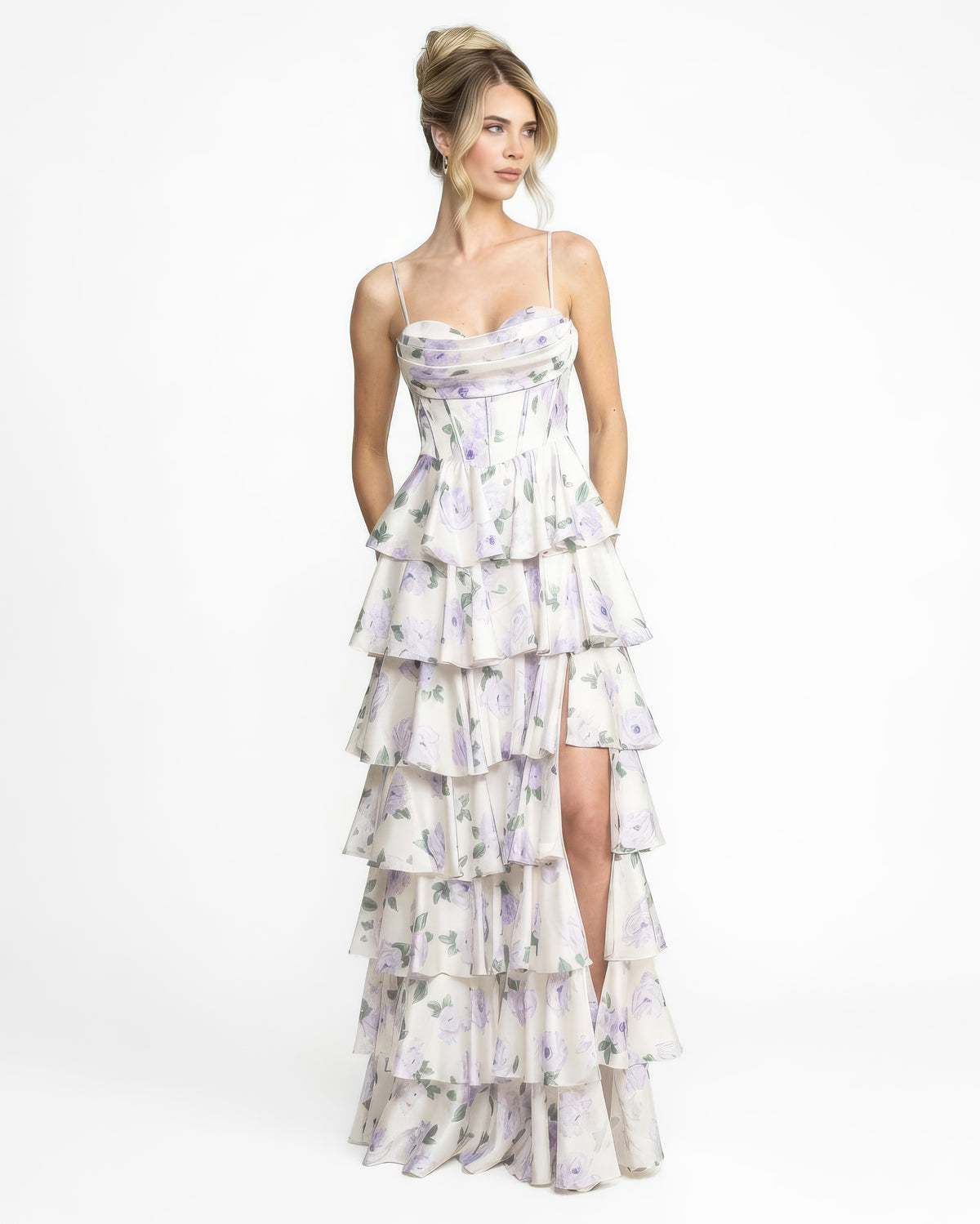 Manuela - Longue robe à volants fleurie