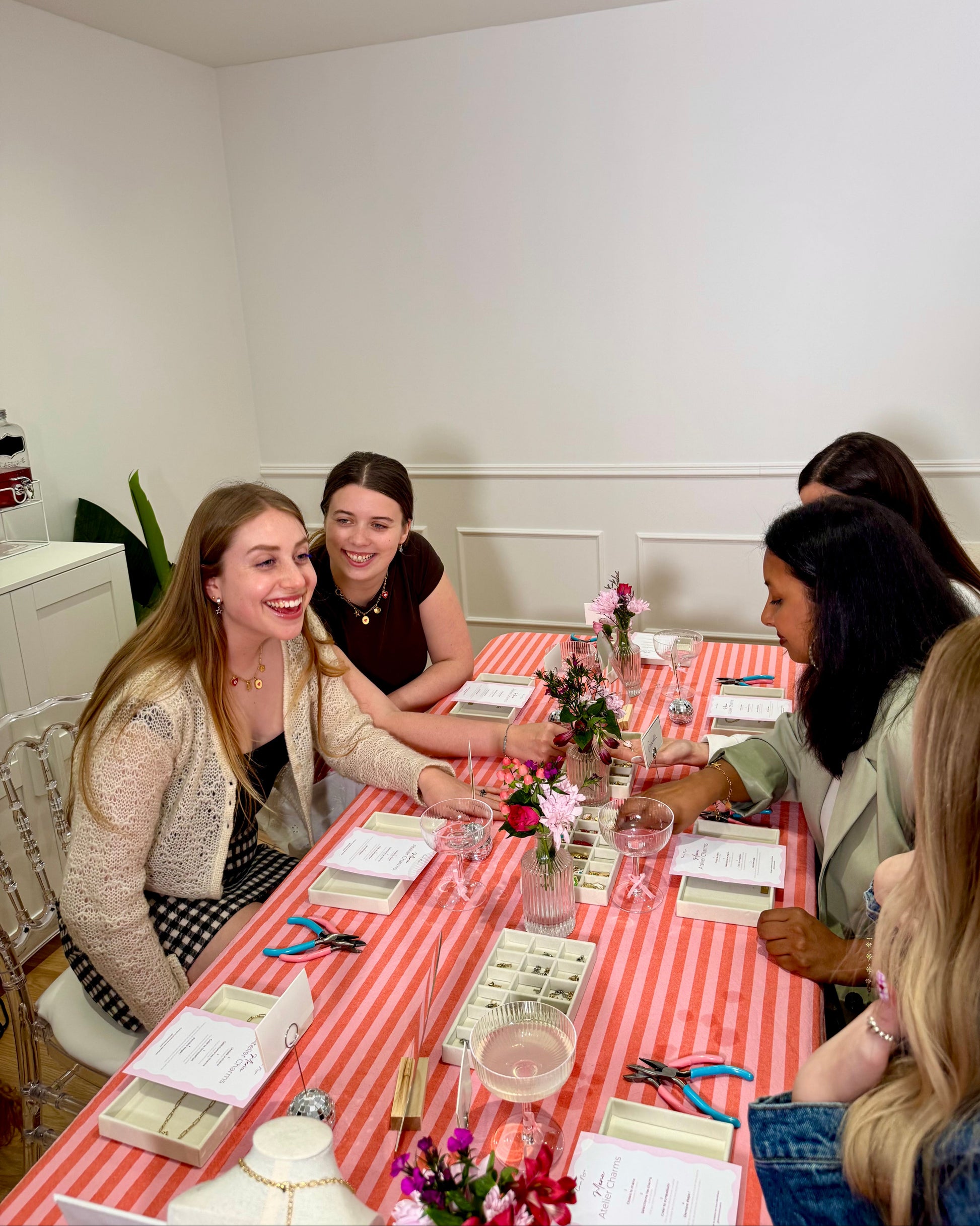 Our jewelry workshops are creative interludes where good humor, sharing, and imagination are the order of the day. In a sweet and ultra-girly atmosphere, come create a piece of jewelry that reflects you, surrounded by those you love: friends, witnesses, bridesmaids, etc.