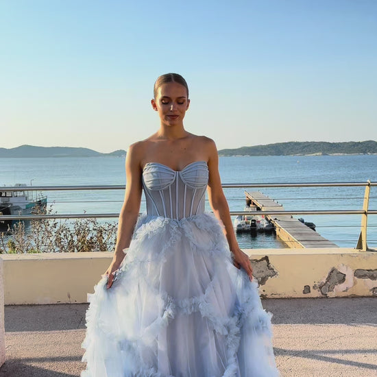 The model is wearing a size S and is 171cm tall. Possibility of adding lacing in the back to adapt to larger sizes.