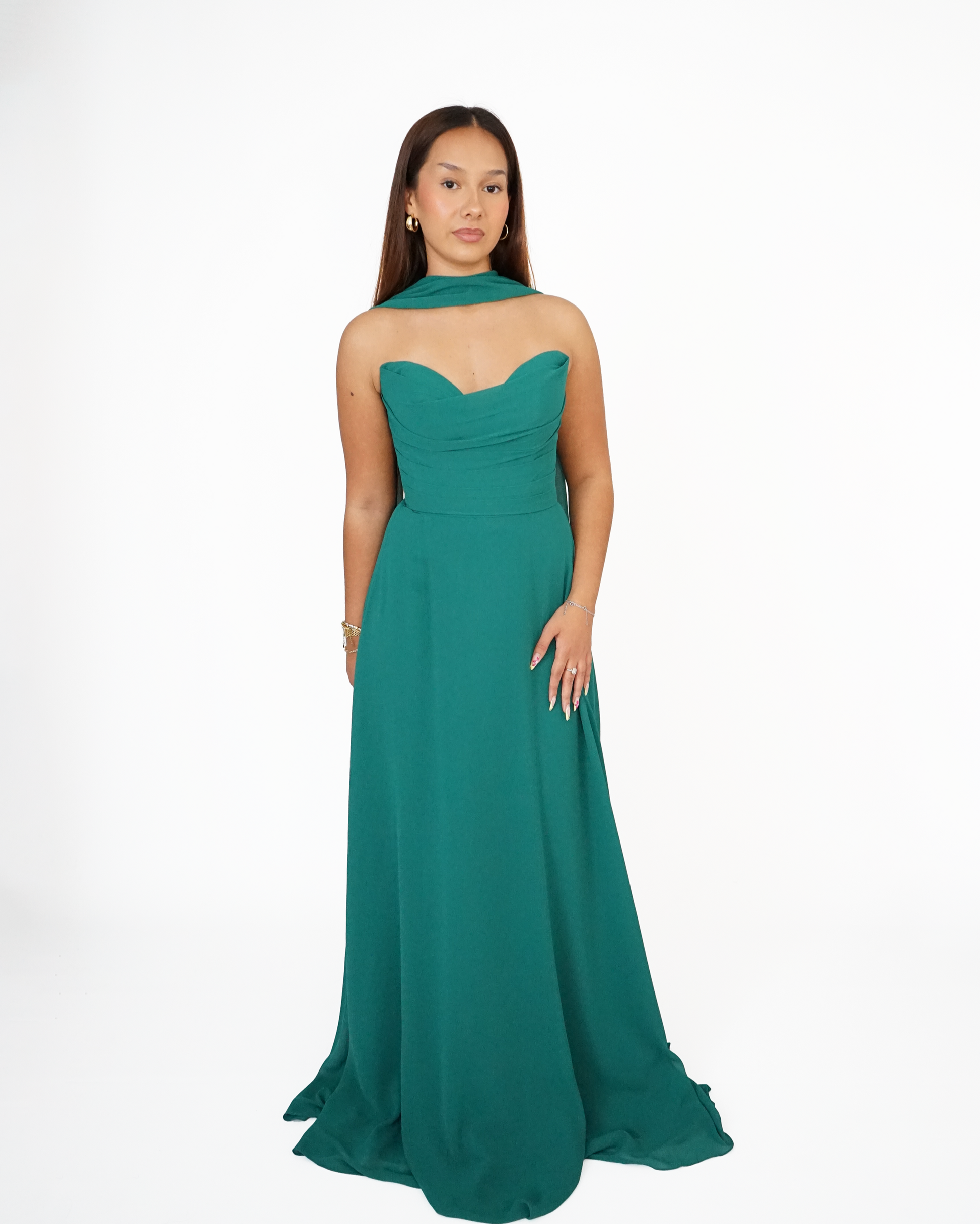Robe Bustier A Foulard Fluide Vert Emeraude