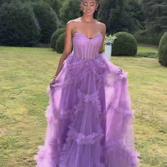 Cette robe longue mauve met en avant votre silhouette et votre féminité. Idéale pour une cérémonie, un bal ou une soirée, elle capte l’attention et vous accompagne dans vos moments importants.